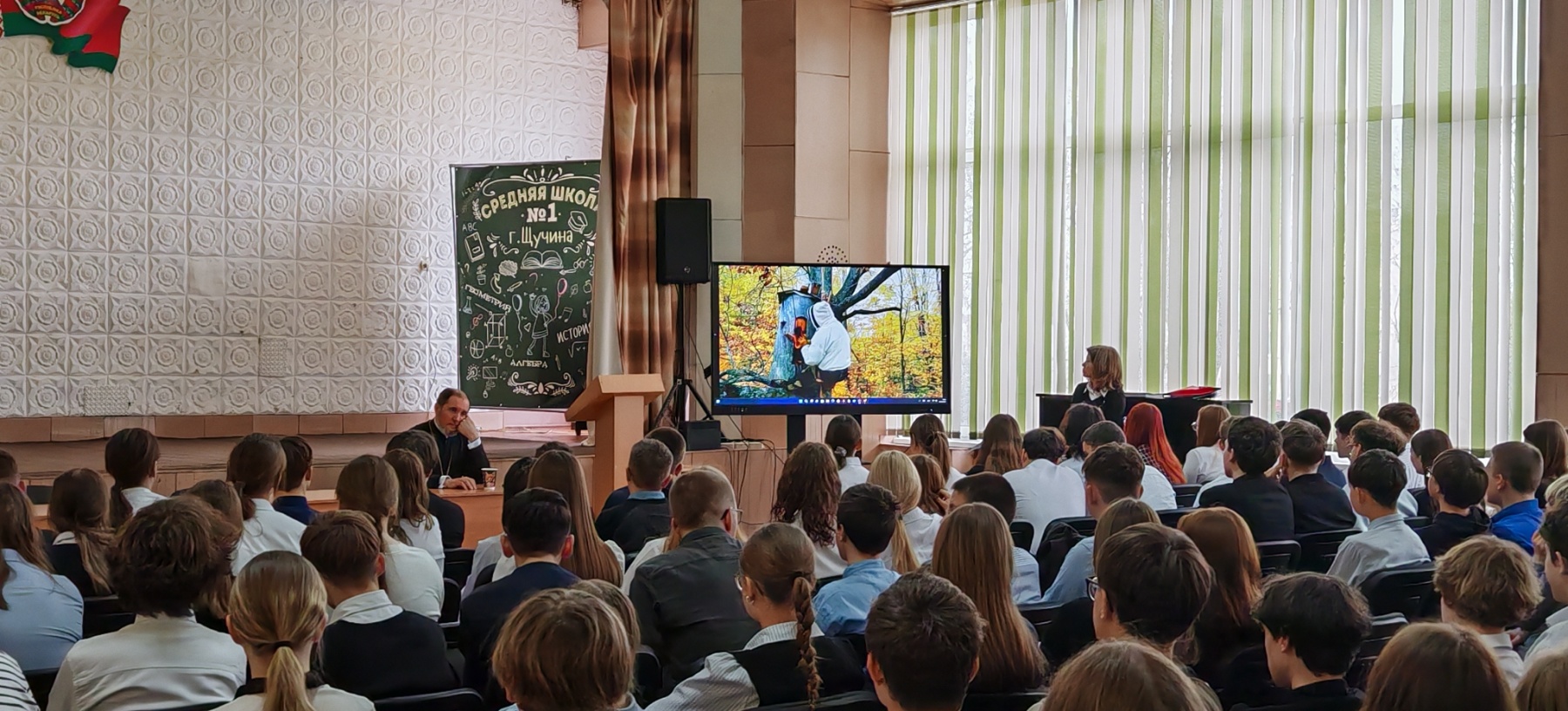 В рамках информационно-образовательного проекта «ШАГ: Школа Активного Гражданина» учащиеся 8–11 классов ГУО «Средняя школа №1 г. Щучина имени А. Е. Андреева» приняли участие в занятии на тему «Быть достойным гражданином Республики Беларусь – значит разделять и поддерживать духовные ценности белорусского общества».