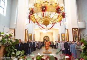 По отпусте Божественной литургии правящий архиерей возглавил крестный ход.