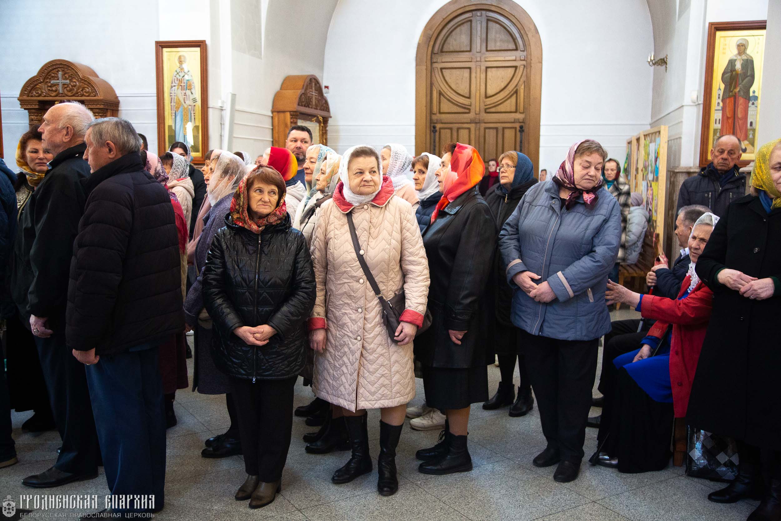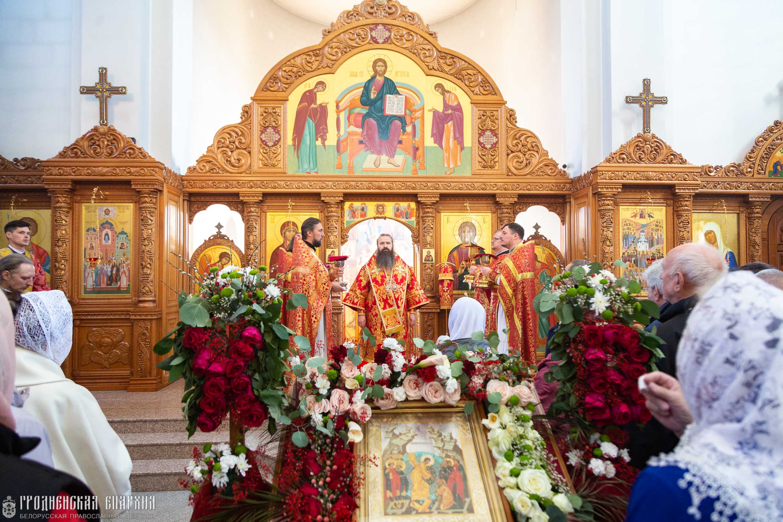 Его Высокопреосвященству сослужили: протоиерей Николай Лабынько, Секретарь Гродненской епархии; протоиерей Вячеслав Гапличник, благочинный Гродненского городского церковного округа; протоиерей Евгений Павельчук, настоятель прихода храма Рождества Христова г. Гродно; иерей Евгений Коваль, ключарь прихода храма Собора Белорусских святых — Архиерейского подворья г. Гродно; иерей Димитрий Бровушкин, и.о. настоятеля прихода храма святого благоверного князя Александра Невского аг. Индура Гродненского района; иерей Андрей Чудинов, настоятель прихода храма святого великомученика и целителя Пантелеимона аг. Пархимовцы Берестовицкого района; священнослужители храмов г. Гродно.
