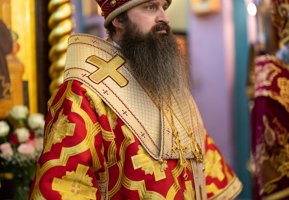 Перед началом богослужения на территории монастыря была совершена лития о упокоении Митрополита Филарета (Вахромеева) и Митрополита Иосифа (Семашко), после чего состоялось возложение цветов к монументам в честь приснопамятных архипастырей.