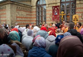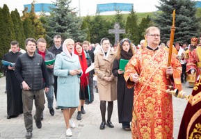 По отпусте Божественной литургии правящий архиерей возглавил крестный ход.