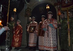 12 апреля, в день Светлого Христова Воскресения, в приходе храма преподобной Евфросинии Полоцкой аг. Пограничный Берестовицкого района состоялось праздничное богослужение, в котором приняли участие военнослужащие заставы №10 «Пограничный» Гродненской пограничной группы. Воины прошли в крестном ходе и молились на ночной пасхальной службе.