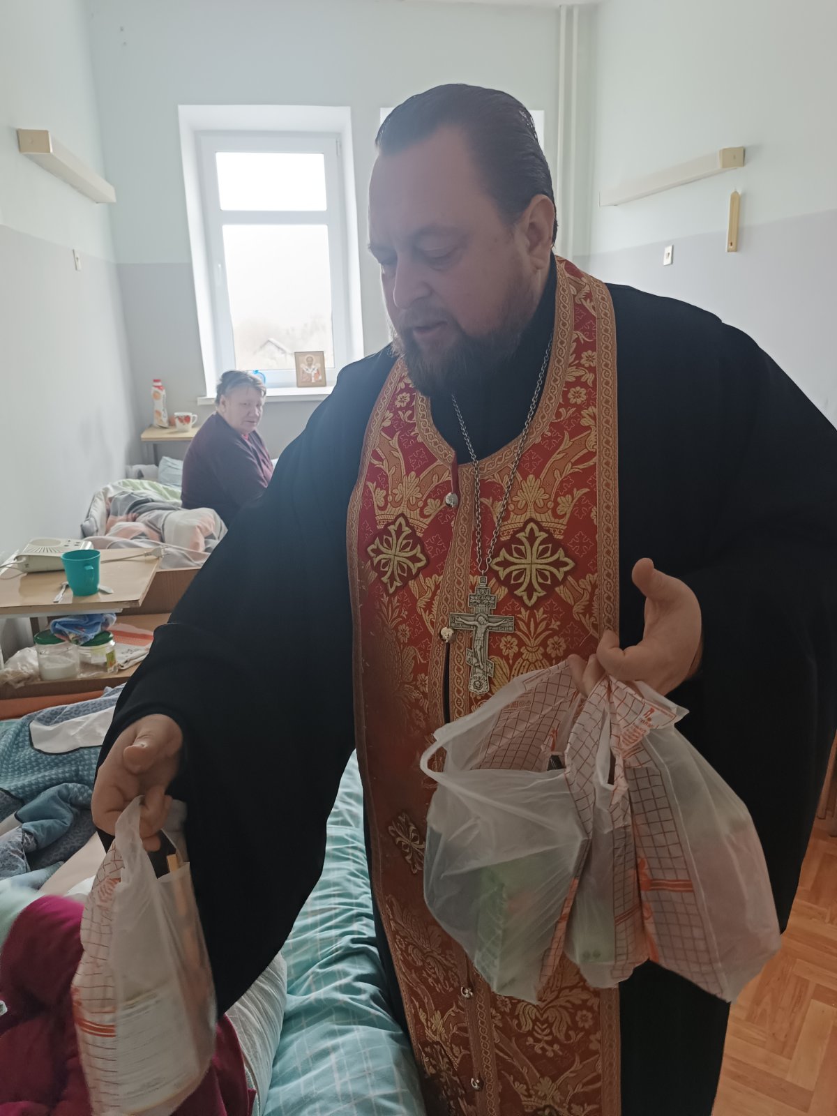 Иерей Александр Иванов посетил социальное отделение Желудокской горпоселковой больницы Щучинского района в день Пасхи