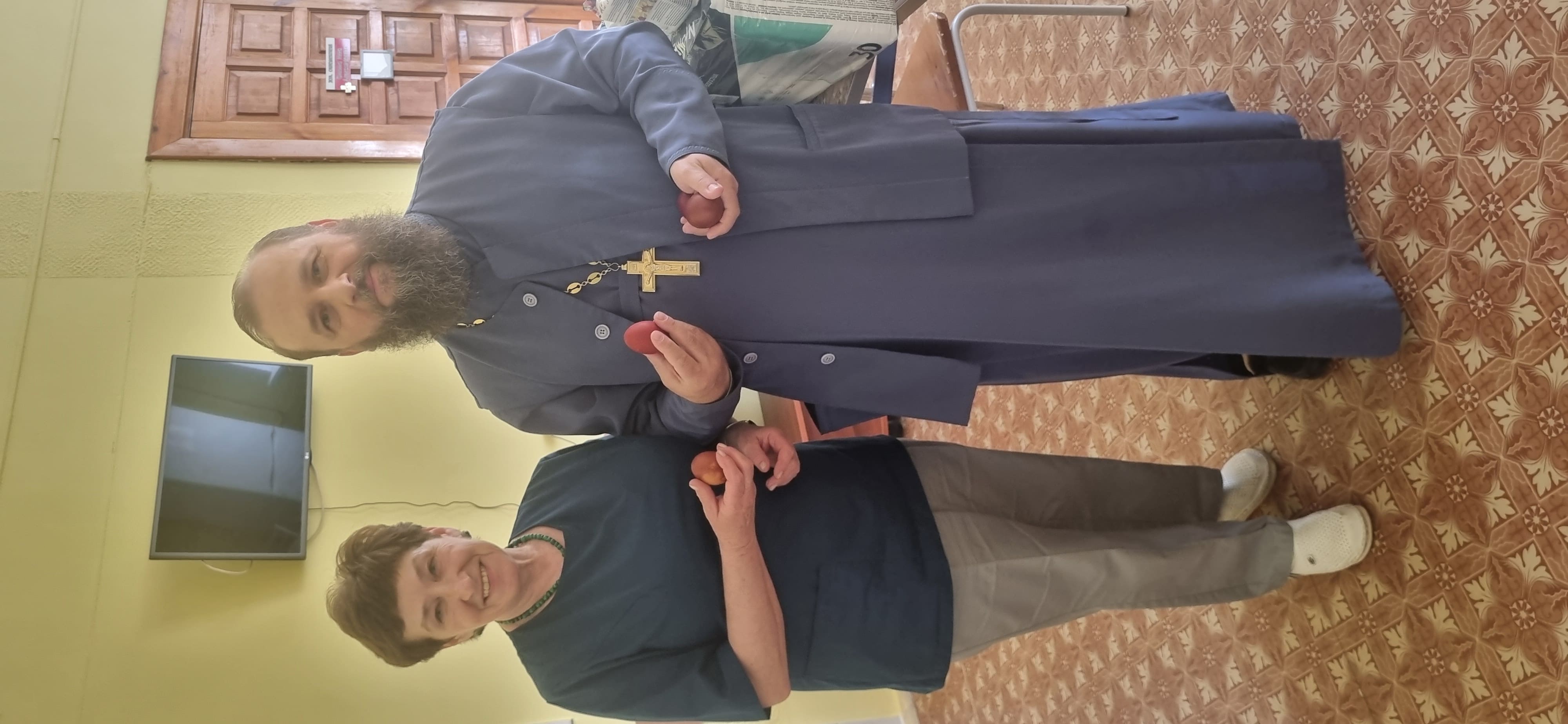 14 апреля, в дни Светлой Пасхальной седмицы, настоятель прихода храма святителя Николая Чудотворца г. Гродно протоиерей Владимир Борисевич совершил визит в ГУЗ «Гродненская областная клиническая больница медицинской реабилитации». Целью встречи стало желание разделить с теми, кто проходит лечение и восстановление, всеобъемлющую радость о Воскресшем Спасителе.