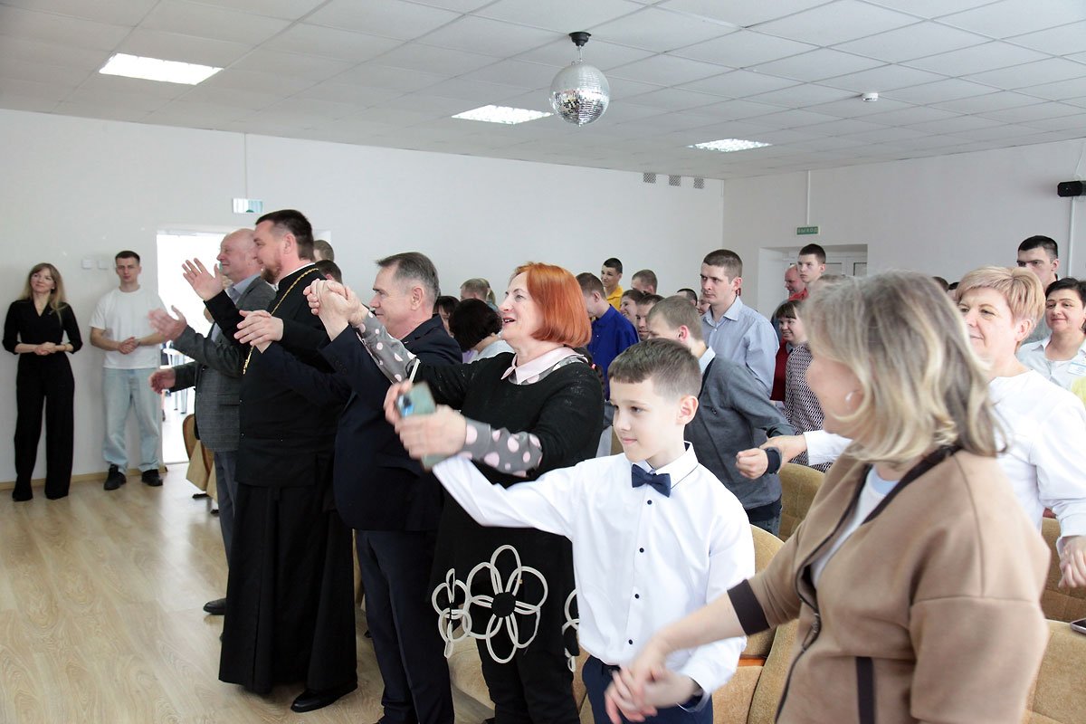 Перед началом встречи к участникам с пасхальным приветствием «Христос Воскресе!» обратились благочинный Щучинского церковного округа иерей Александр Пастерняк и ключарь храма Собора Белорусских Святых иерей Евгений Коваль.
