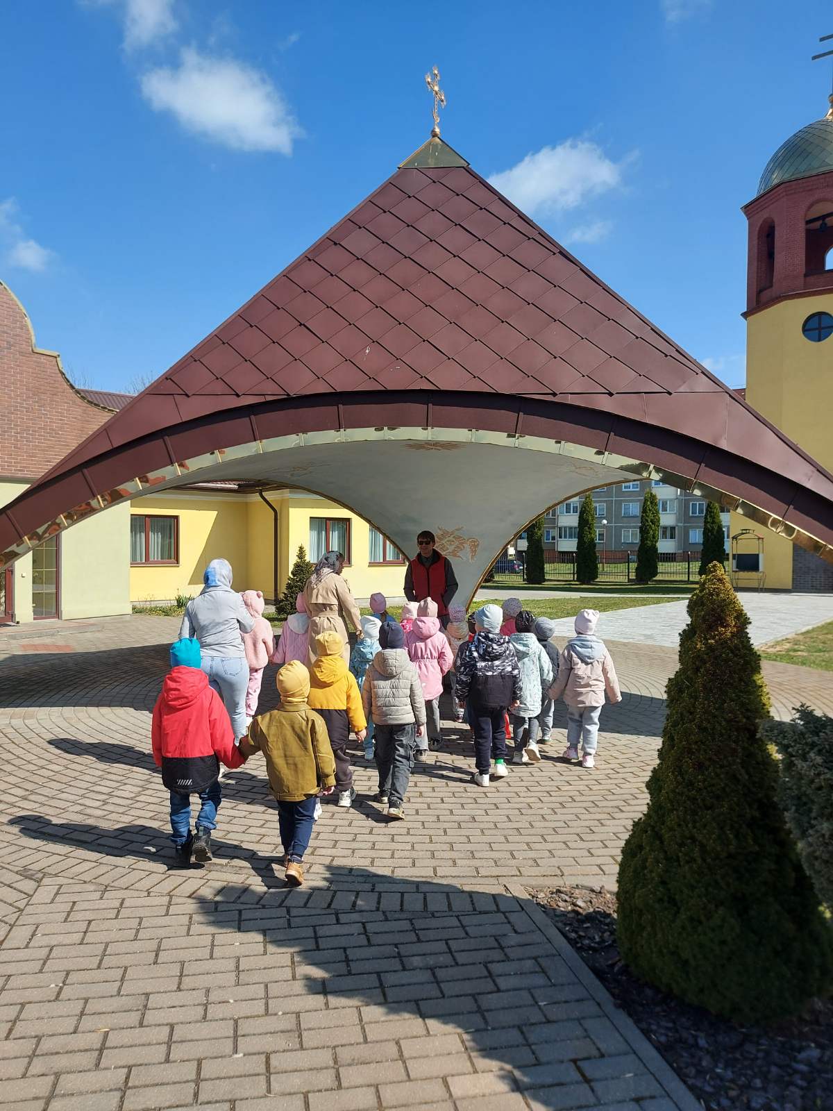 Священнослужитель познакомил детей с праздником Святой Пасхи, его историей и традициями, а также провел экскурсию по приходскому храмовому комплексу.