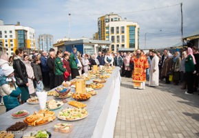 В завершение визита владыка Антоний разделил праздничную трапезу с прихожанами на прихрамовой территории.