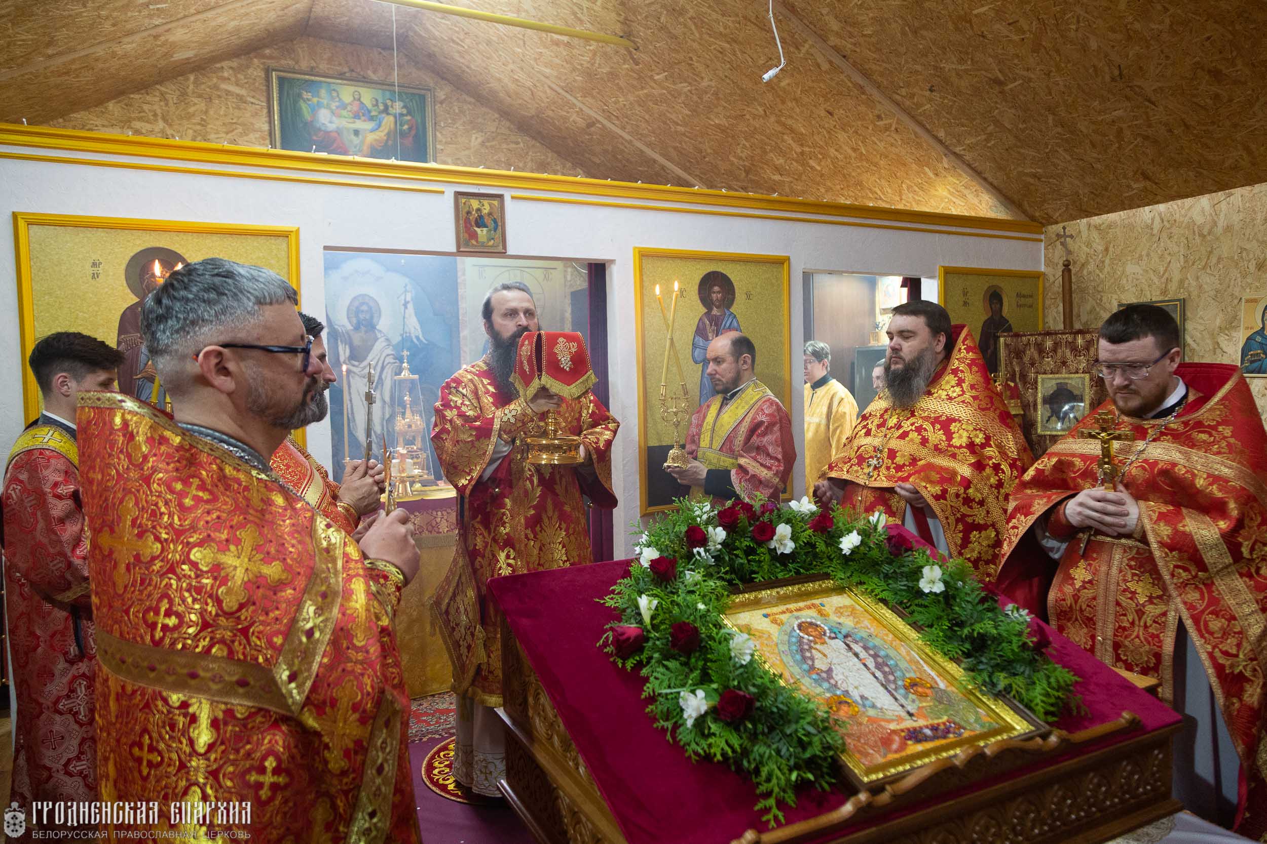 Его Высокопреосвященству сослужили: протоиерей Николай Лабынько, Секретарь Гродненской епархии; протоиерей Александр Железный, настоятель прихода храма Усекновения главы Иоанна Предтечи г. Гродно; иерей Алексей Савко, настоятель прихода храма Воскресения Христова; иерей Василий Татарчук, клирик прихода храма Воскресения Христова.
