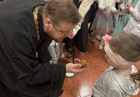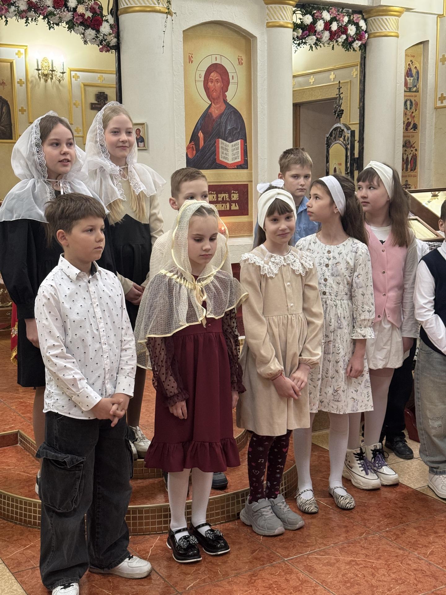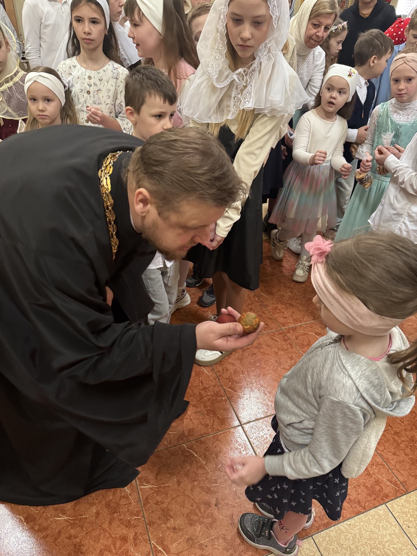 С приветствием «Христос Воскресе!» к собравшимся обратился настоятель прихода иерей Александр Юзва. Воспитанники воскресной школы прославляли Христа в песнопениях и стихах: младшие радовали сердечной чистотой и искренностью, а старшие подготовили мини-постановку о спасительной смерти и Воскресении Христа. Особенные ребята также были активными участниками праздника. В завершение торжества все дети получили угощения от отца настоятеля и матушки Елены.