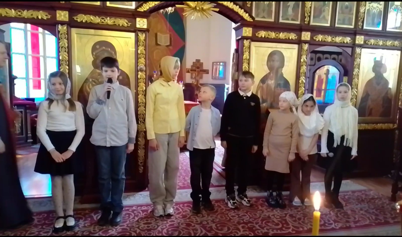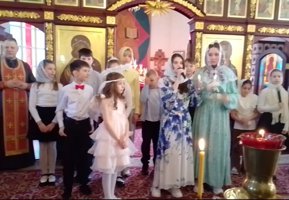 Воспитанники воскресной школы храма святого равноапостольного князя Владимира поздравили прихожан с Пасхой