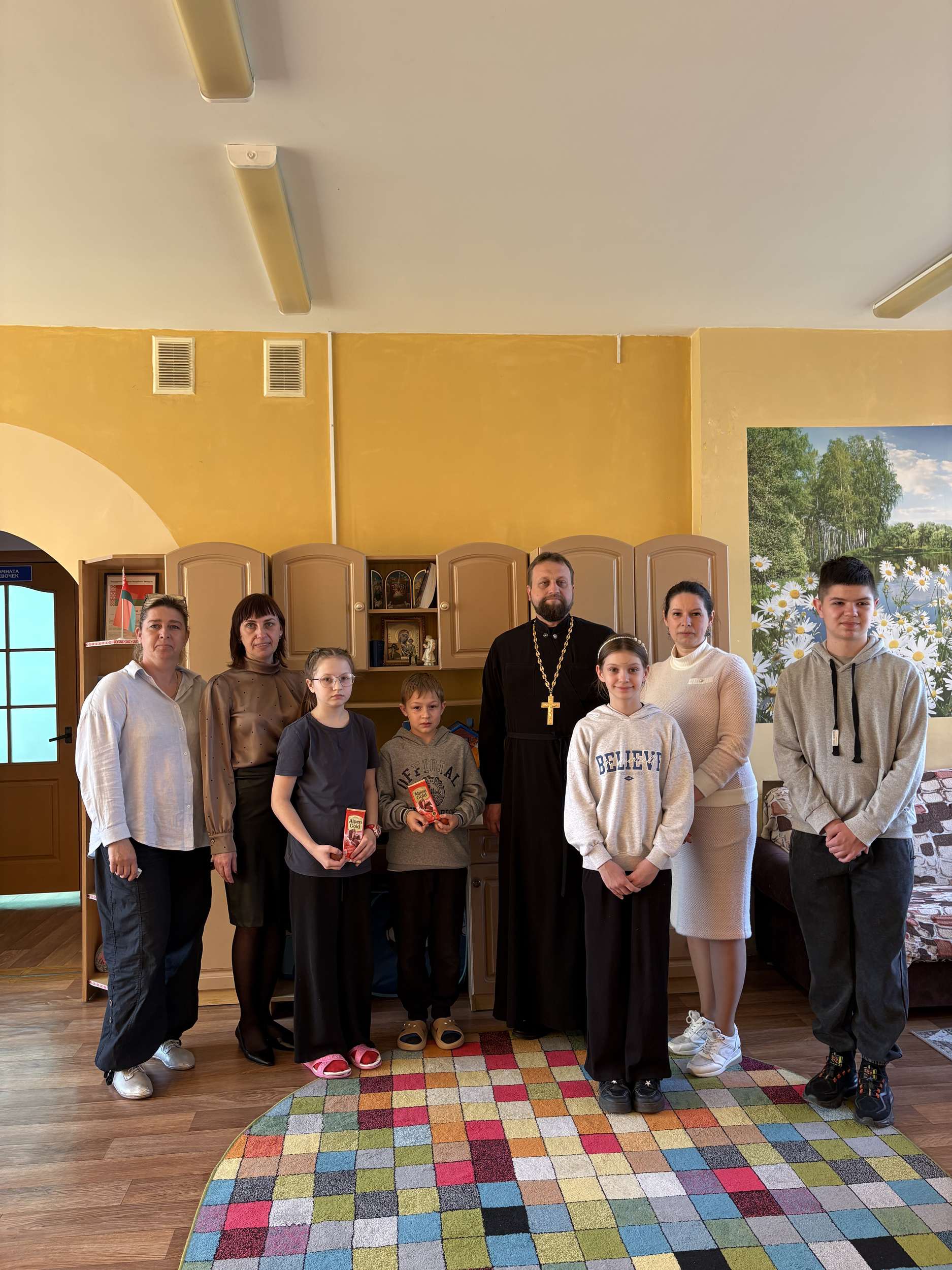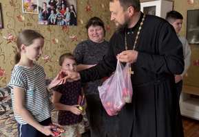 Священнослужитель и дети поздравили с праздником Светлого Христова Воскресения пожилых граждан Зарудавского дома самостоятельного совместного проживания, воспитанников детского дома семейного типа, а также воспитанников детского социального приюта г. Мосты.