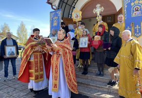 По окончании Литургии состоялся крестный ход вокруг храма. Иерей Георгий огласил Пасхальное послание архиепископа Антония и обратился к молящимся с проповедью, поблагодарив иерея Димитрия и всех собравшихся за общую молитву.