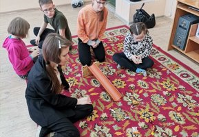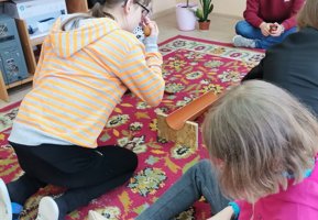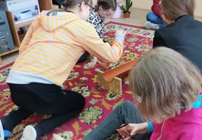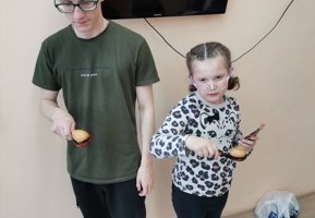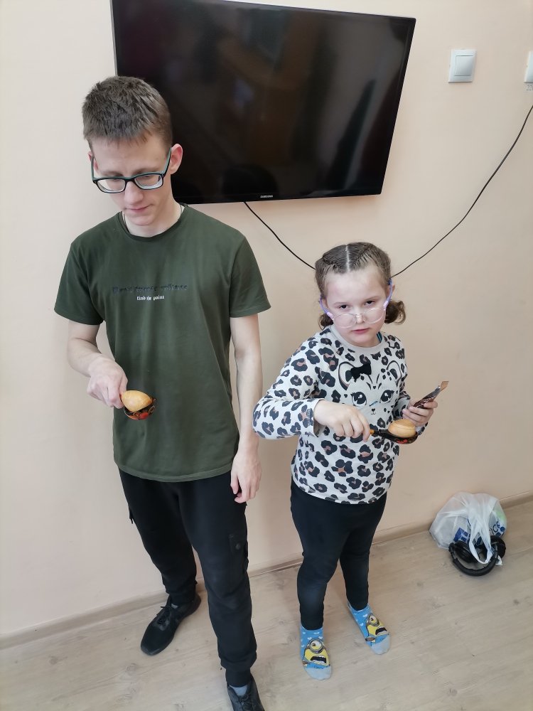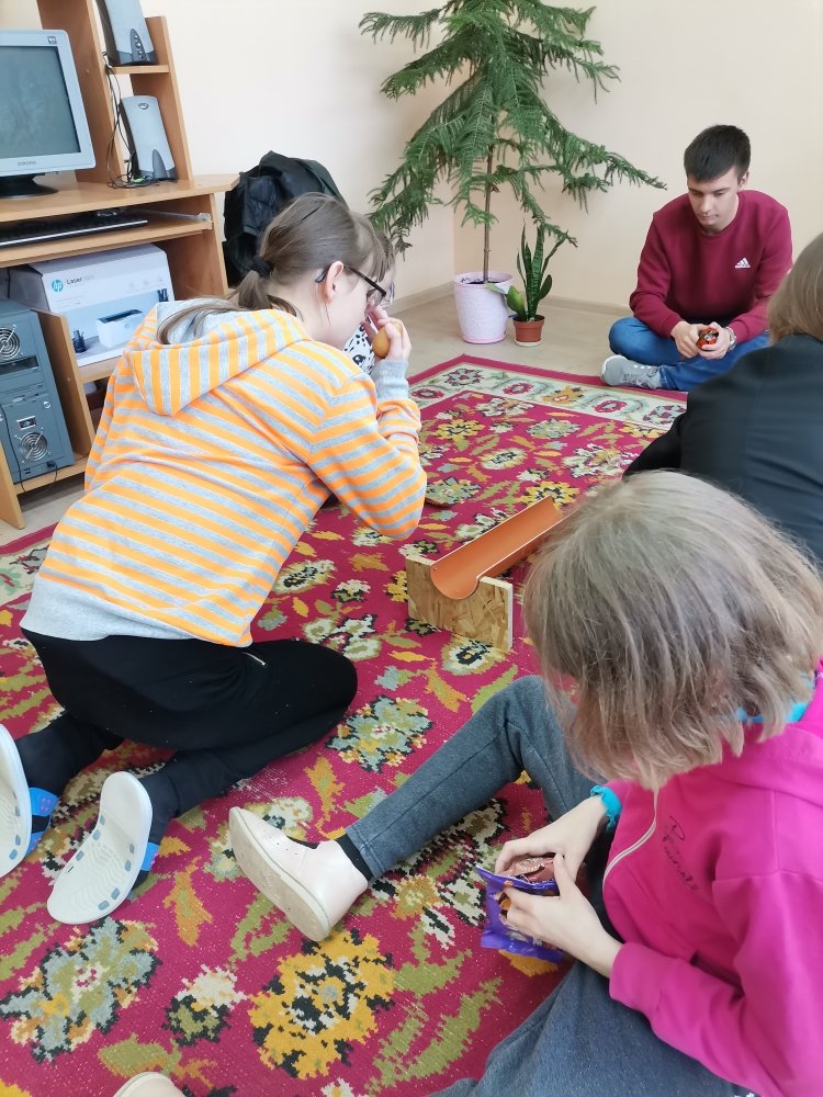 Ребята вместе поиграли в пасхальные игры: катание яиц с горки, лабиринт, пазлы, гонки с яйцами на ложках, разгадывали загадки. В завершение молодые люди спели пасхальные песнопения и вручили учащимся небольшие сладкие подарки.