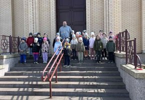 17 апреля, на Светлой неделе Пасхи, воспитанники старших групп детского сада аг. Обухово Гродненского района посетили православный храм преподобного Серафима Саровского. Экскурсию для детей провёл настоятель храма протоиерей Игорь Волков.