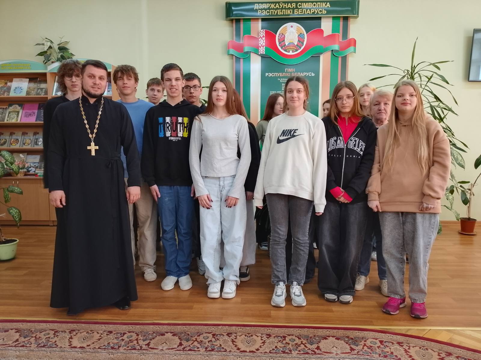 В ходе разговора священнослужитель затронул вопросы взаимопонимания, доброты, уважения, искренности и веры. На примере житий белорусских святых — преподобной Евфросинии Полоцкой и блаженной Валентины Минской — иерей Александр Дежурко объяснил учащимся православное понимание смысла человеческого бытия, рассказал о помощи и заботе о ближнем и их роли в жизни современного верующего человека.
