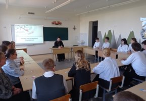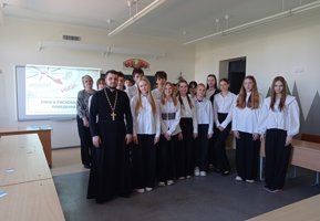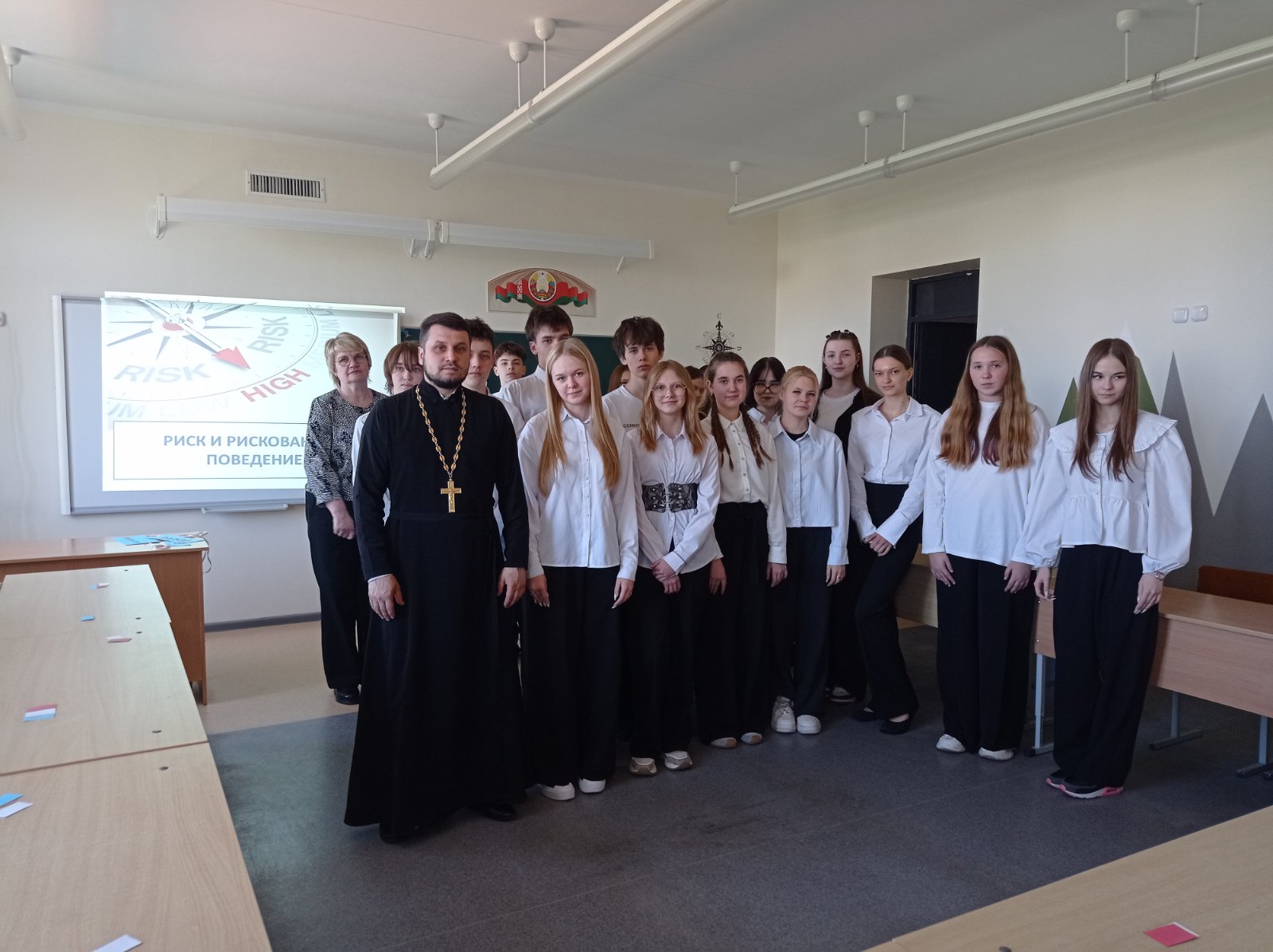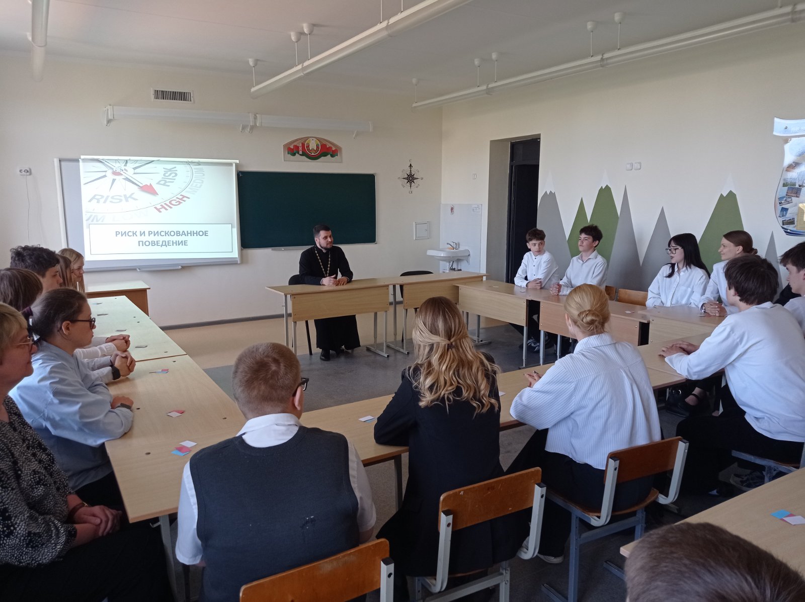 22 апреля в государственном учреждении образования «Средняя школа №1 г. Скиделя имени В. Г. Пешко» учащиеся 11 «А» и 8 «Г» классов приняли участие в заседании клуба «Альтернатива» на тему «Риск и рискованное поведение». На урок был приглашен клирик прихода храма Собора новомучеников и исповедников земли Белорусской г. Скиделя иерей Александр Дежурко.