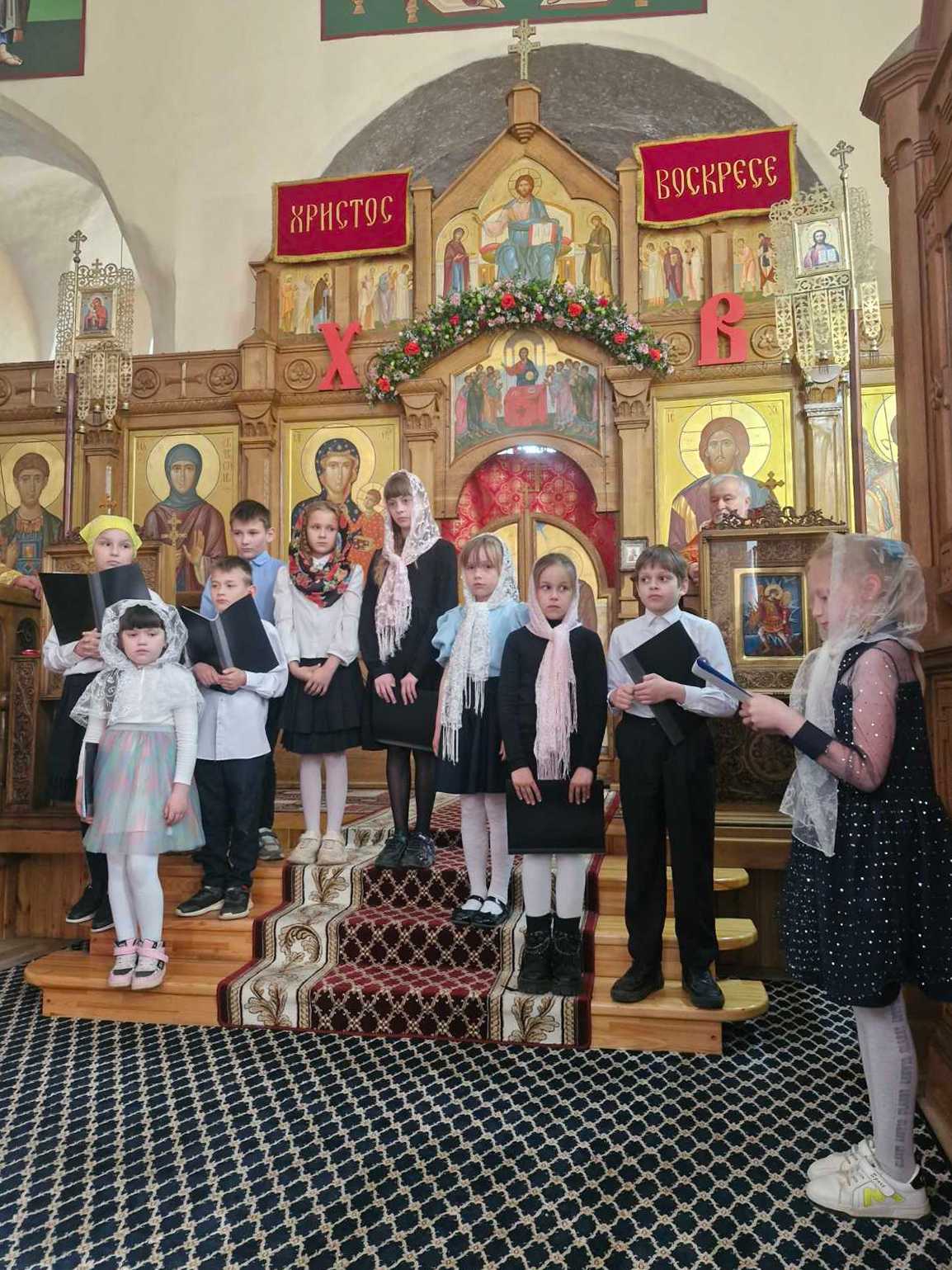 Воспитанники воскресной школы прихода храма Архангела Михаила в Сынковичах поздравили прихожан с Пасхой