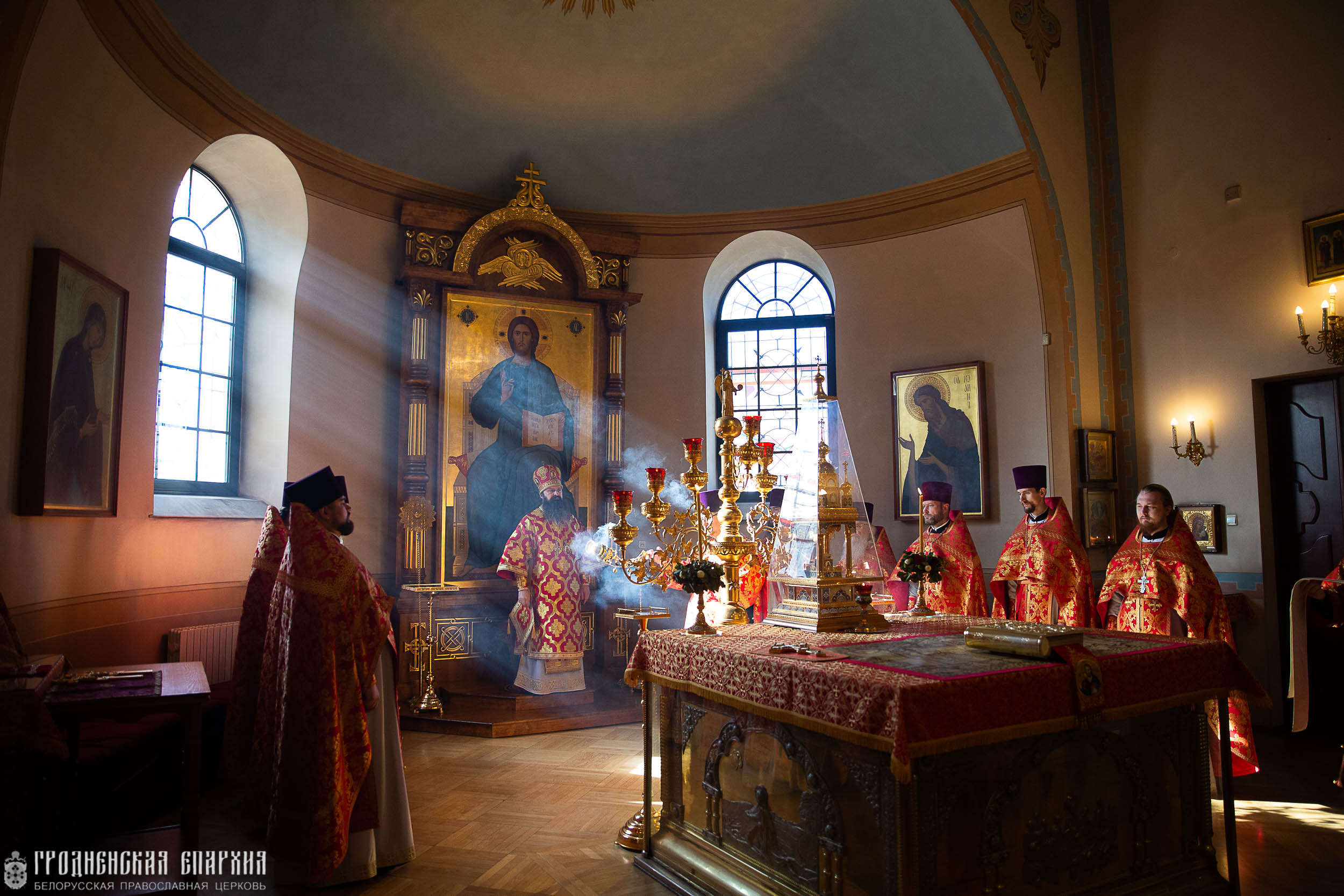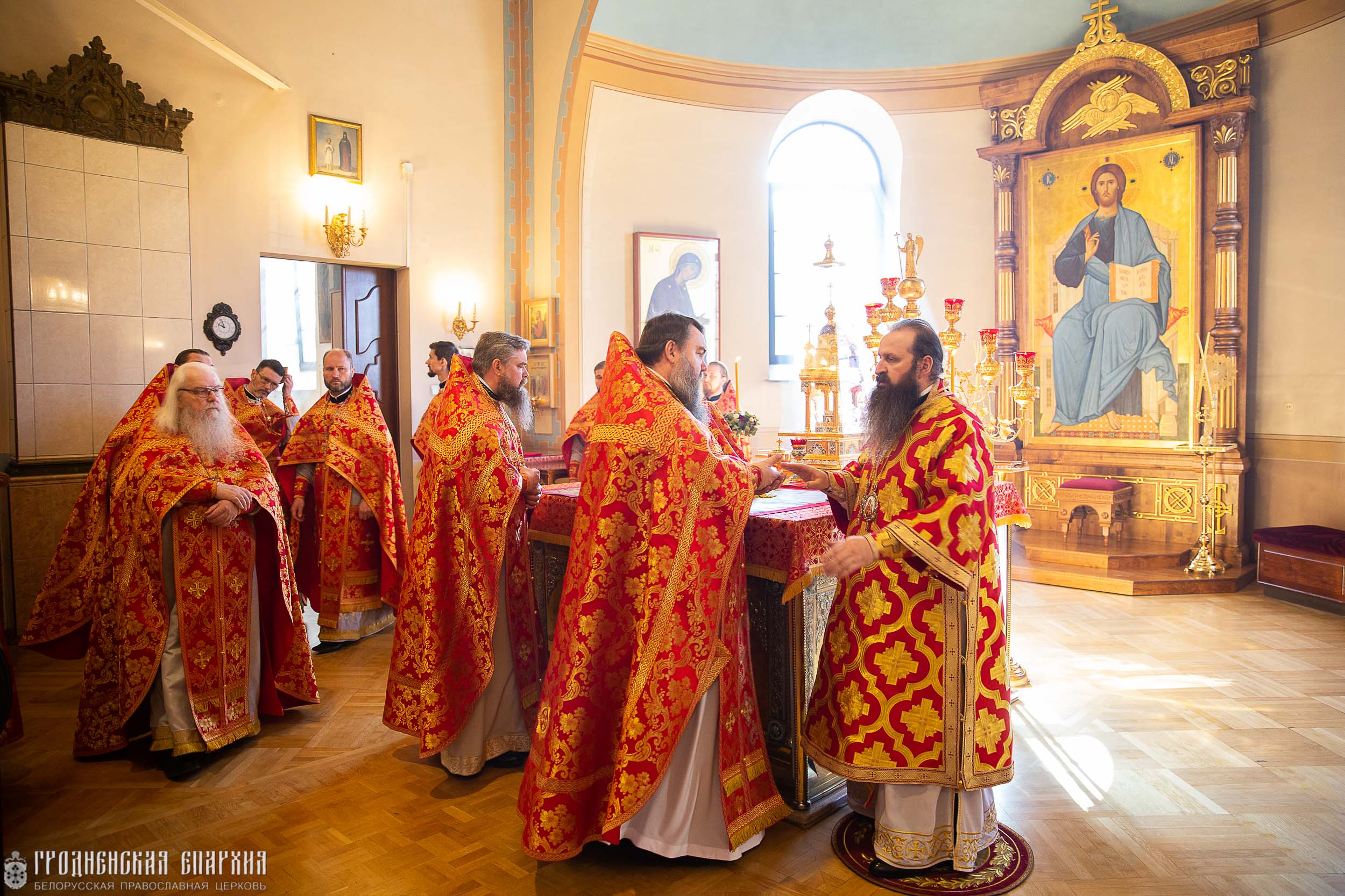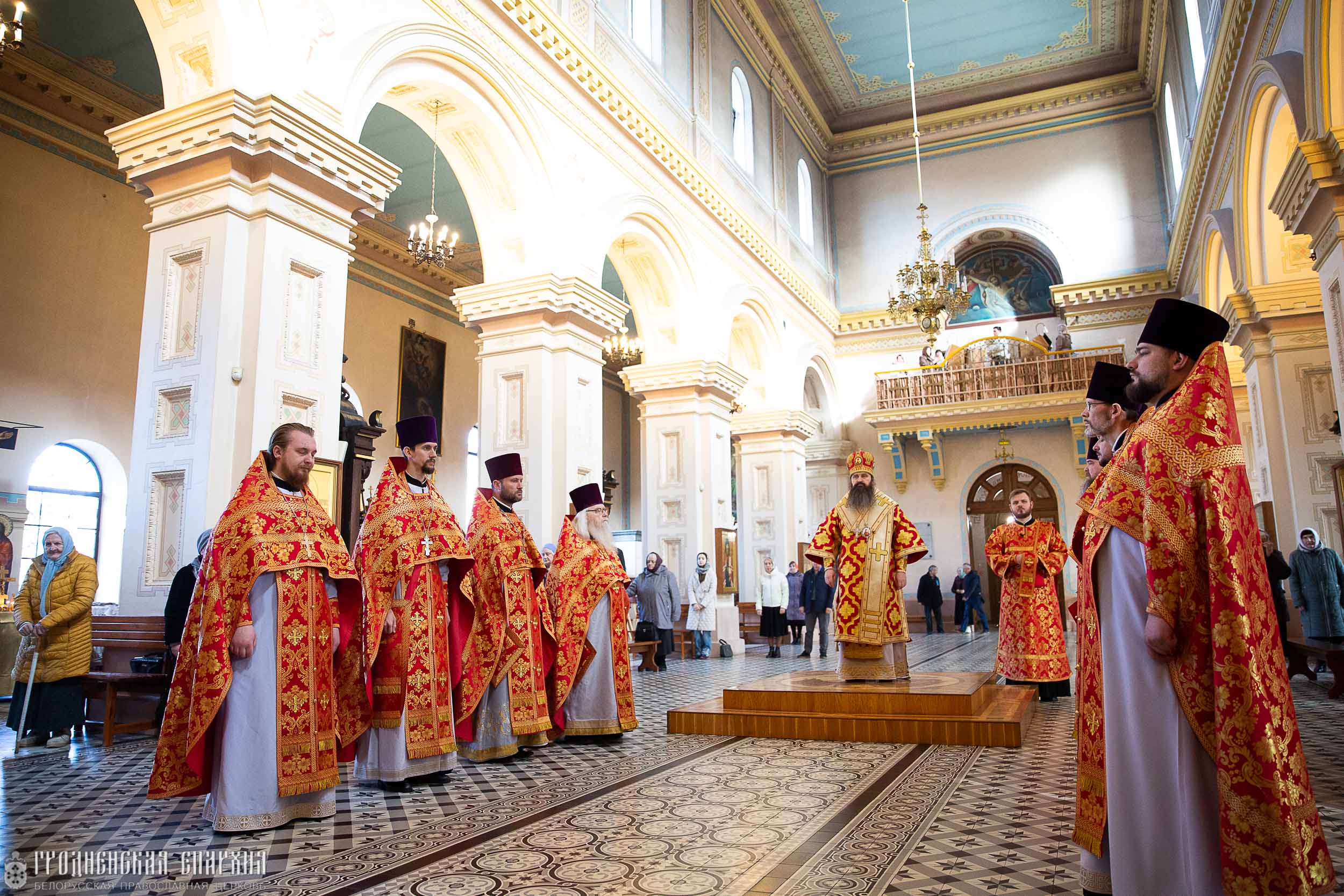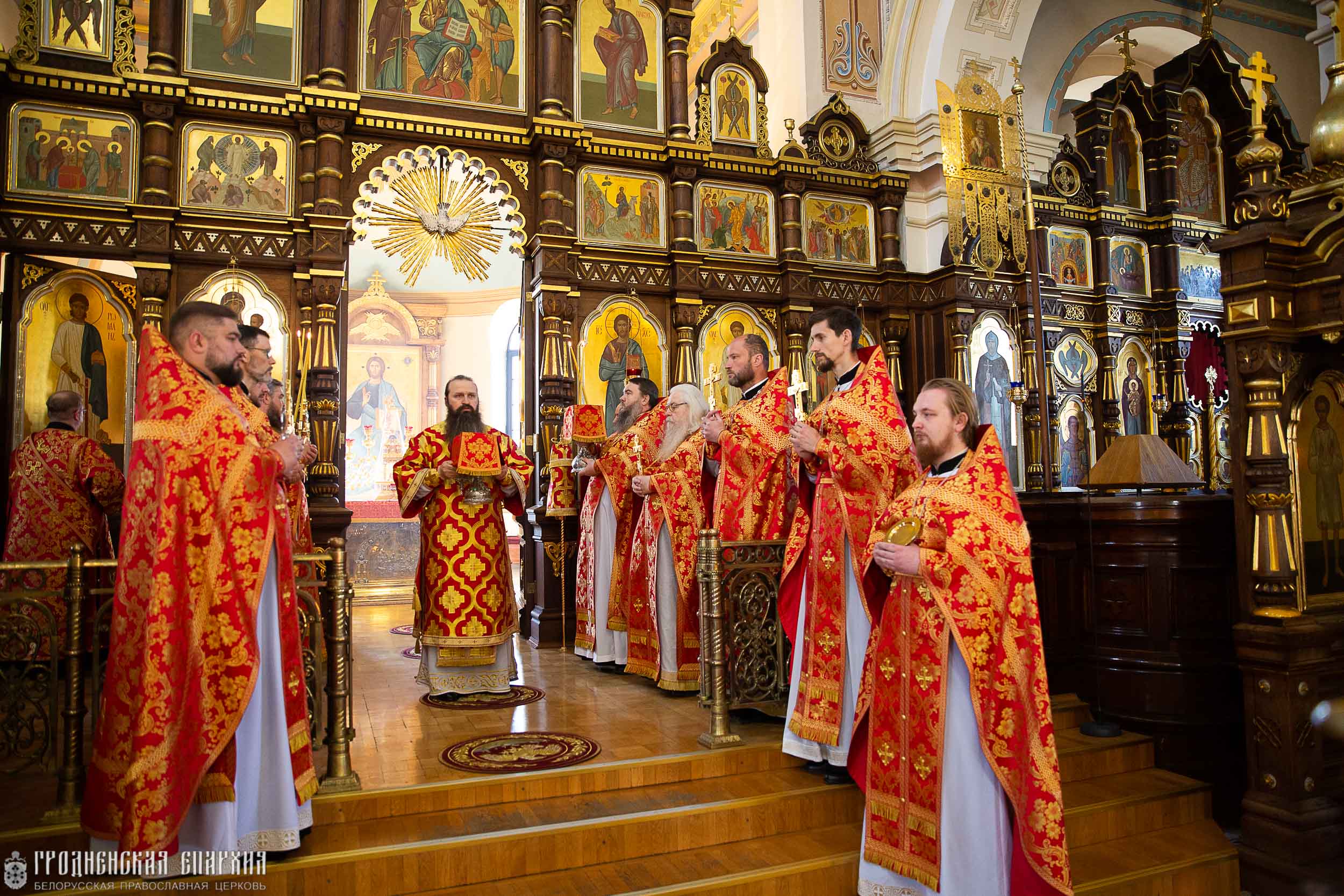 Его Высокопреосвященству сослужили: протоиерей Николай Лабынько, секретарь Гродненской епархии; протоиерей Григорий Беляцкий, настоятель кафедрального собора Покрова Пресвятой Богородицы; протоиерей Андрей Бондаренко, духовник Гродненской епархии; клирики кафедрального собора.