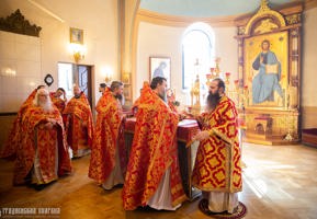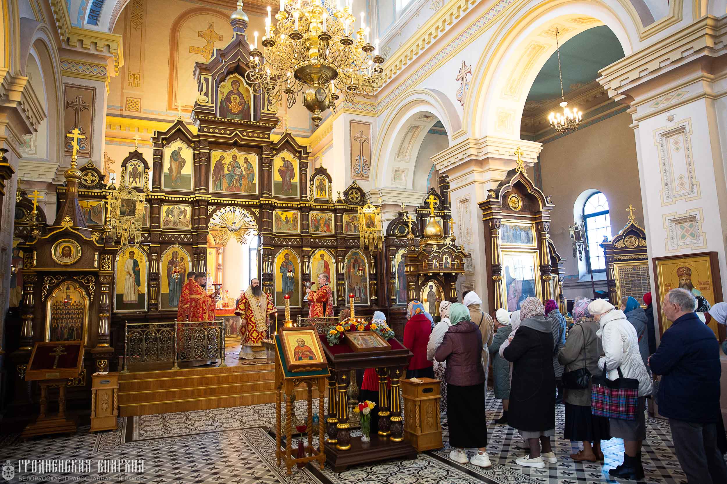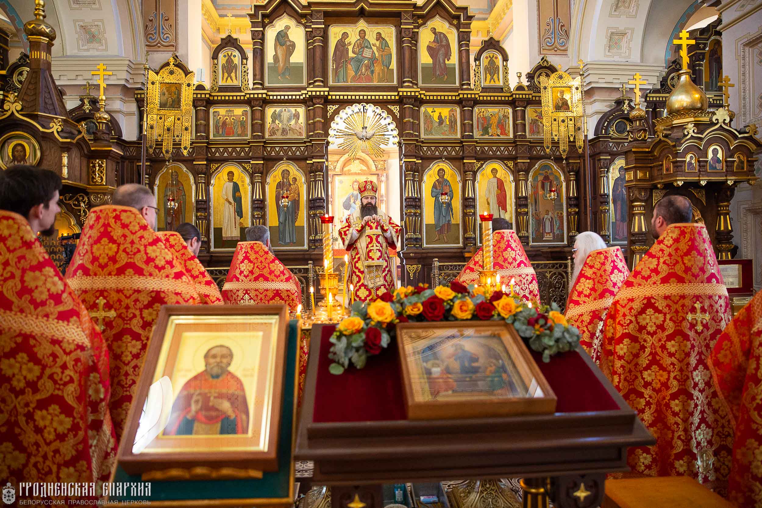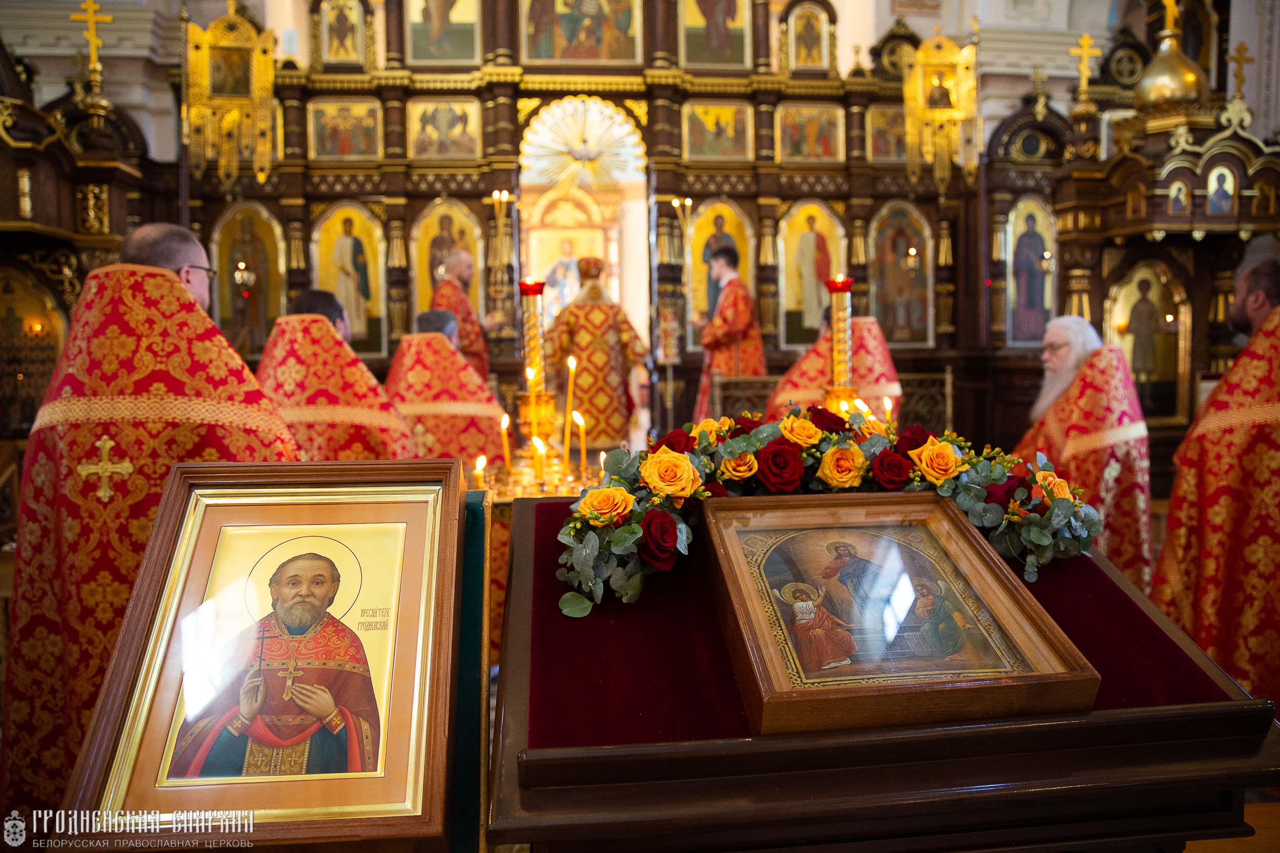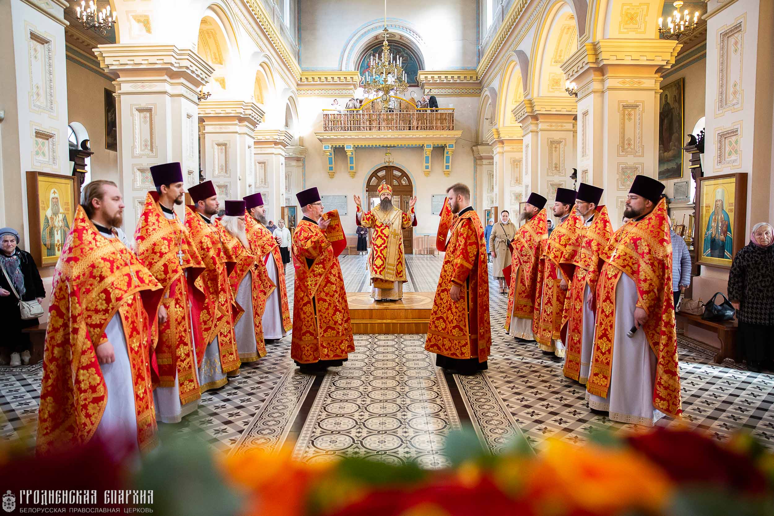 Его Высокопреосвященству сослужили: протоиерей Николай Лабынько, секретарь Гродненской епархии; протоиерей Григорий Беляцкий, настоятель кафедрального собора Покрова Пресвятой Богородицы; протоиерей Андрей Бондаренко, духовник Гродненской епархии; клирики кафедрального собора.