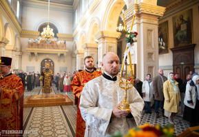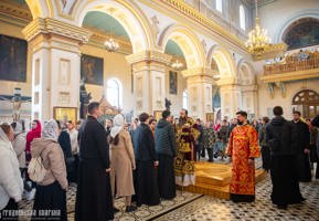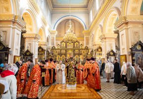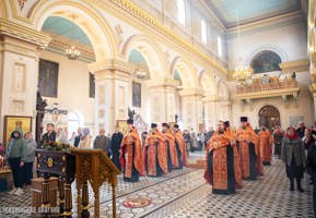 Его Высокопреосвященству сослужили: протоиерей Григорий Беляцкий, настоятель кафедрального собора Покрова Пресвятой Богородицы; иерей Александр Гук, руководитель отдела по церковной благотворительности и социальному служению; клирики кафедрального собора.