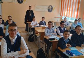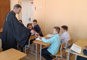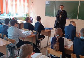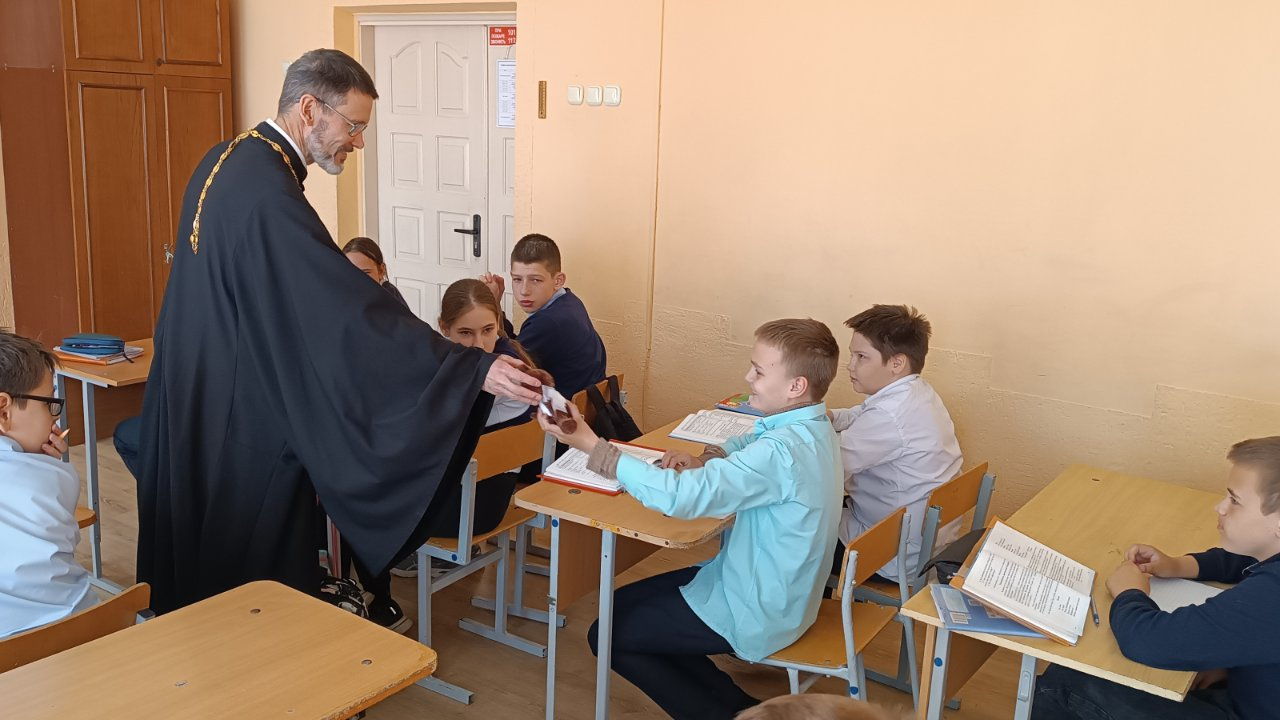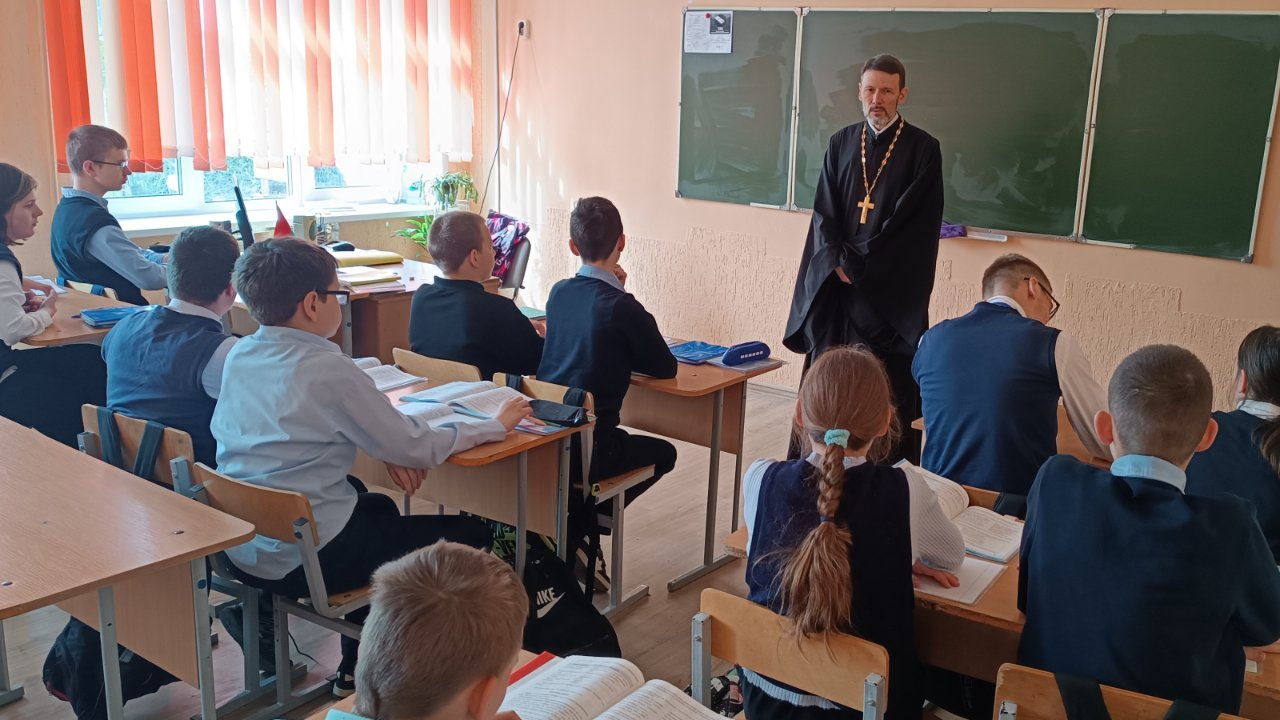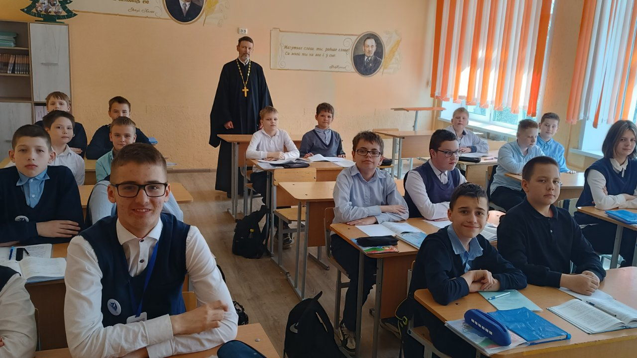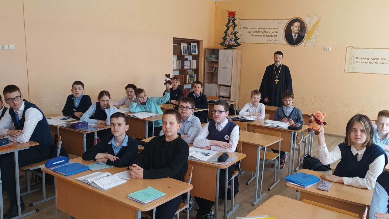 Священнослужитель провел беседу с учащимися 5 «Б» класса на тему «Дружба». В ходе занятия было рассмотрено практическое применение евангельских слов: «…как хотите, чтобы с вами поступали люди, так поступайте и вы с ними…» (Мф. 7:12). Также иерей Михаил Перец рассказал школьникам о значении праздника Пасхи и о молитве.