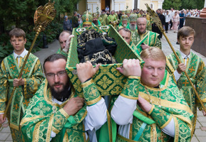 По окончании праздничного богослужения архипастыри, духовенство, сестры и молящиеся прошли крестным ходом вокруг собора, после чего было совершено молебное пение преподобной Манефе Гомельской.