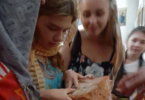 Отдельное замечательное обстоятельство — знакомство с иереем Евгением, поведавшим историю святого места. Молодежь услышала и легенду об обретении Волчинковской иконы Божией Матери, и интересные факты об архитектурных особенностях храма-крепости, и многое другое.