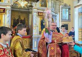В конце богослужения священнослужители поздравили благочинного Зельвенского церковного округа, настоятеля Свято-Троицкого храма протоиерея Георгия Суботковского с днем памяти Небесного покровителя и днем рождения.