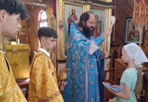 Учащиеся и их родители молитвенно испросили помощи у Бога в нелегком деле освоения наук. Многие молящиеся причастились за Литургией Святых Христовых Таин.