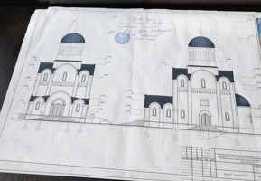 Настоятель прихода протоиерей Валерий Боричевский ознакомил отца Иоанна с текущими подготовительными работами к сооружению фундамента главного храма.