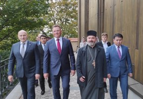 Борисоглебский (Коложский) храм XII века посетили руководители министерств по чрезвычайным ситуациям трех стран: министр по чрезвычайным ситуациям Беларуси Вадим Синявский, министр Российской Федерации по делам гражданской обороны, чрезвычайным ситуациям и ликвидации последствий стихийных бедствий Александр Куренков и заместитель министра по чрезвычайным ситуациям Казахстана Бауыржан Сыздыков.