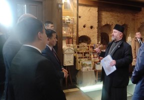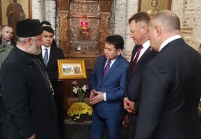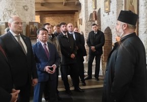Экскурсию по древней Коложе для высоких гостей провел настоятель храма протоиерей Александр Болонников. Руководители спасательных ведомств трех стран оставили записи в книге почетных гостей. В конце встречи отец Александр вручил гостям памятные подарки.