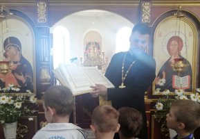 Клирик храма иерей Александр Дежурко провел духовно-нравственную беседу с гостями, рассказал об устройстве храма и его убранстве.
