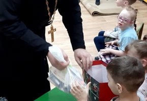 9 января настоятель прихода священник Александр Юзва и молодежное братство посетили ГУО «Специальный детский сад № 3 г. Волковыска». Священнослужитель поздравил ребят со светлым Христовым Рождеством и подарил сладости. Братчики от имени прихожан вручили ребятам подарки, собранные в ходе акции.