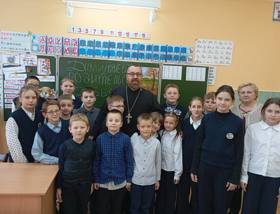 Иерей Олег Засим провел беседу с учащимися начальных классов Скрибовской средней школы