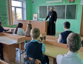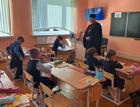 Иерей Олег Засим провел беседу о празднике Воздвижения Креста Господня в Скрибовской средней школе