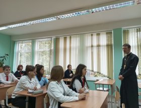 23 сентября клирик кафедрального собора Покрова Пресвятой Богородицы города Гродно, руководитель православного центра духовной помощи и реабилитации «Трезвение» иерей Михаил Перец провел встречу с учащимися 9 «Б» класса гимназии №6.