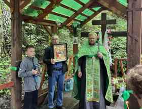 Иерей Николай Гляд совершил молебен с акафистом у поклонного креста на месте разрушенного храма Святой Троицы в деревне Щара